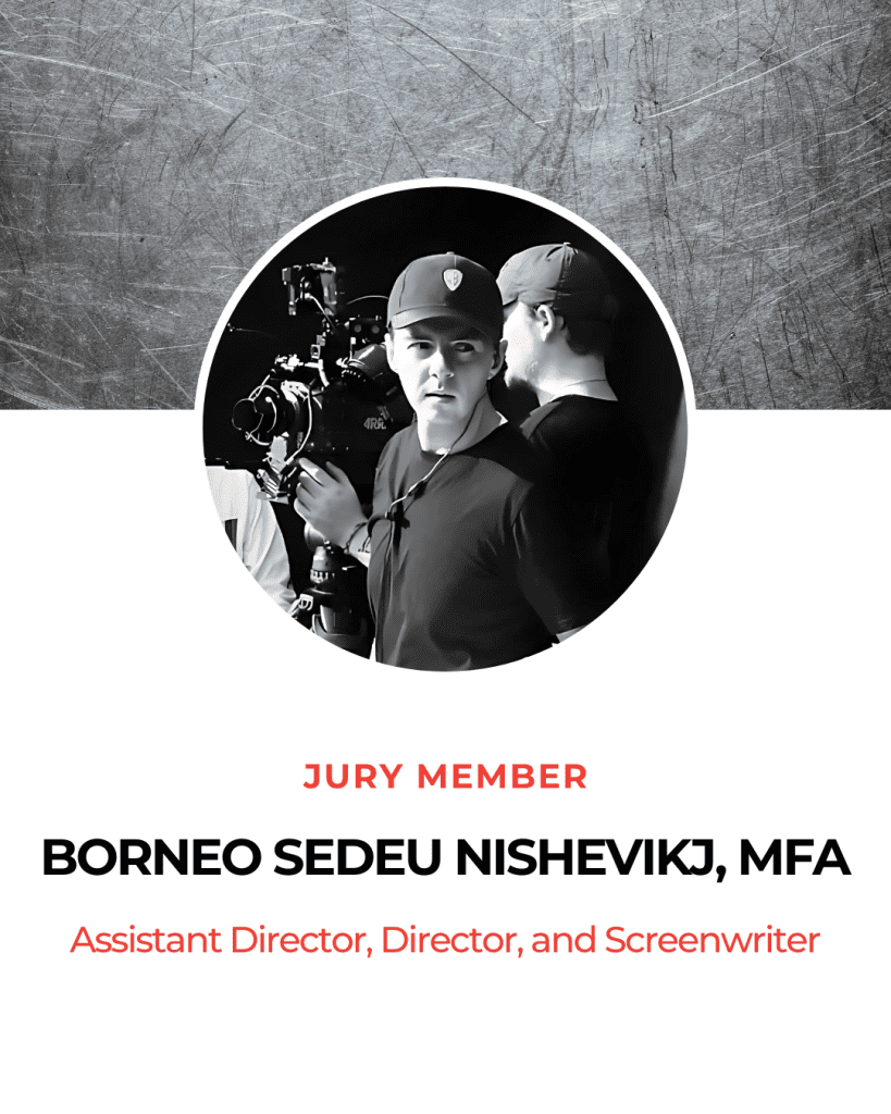 Borneo Sedeu Nishevikj is a Macedonian-born, Atlanta-based first assistant director, director, screenwriter, and cinematographer for film and television. His film A.D.A.M. (2022) won Best Sci-Fi Film at the New York International Film Awards, and his cinematography on Gnomes (2023) earned an ASC nomination for the Owen Roizman Award. He has worked as an assistant director on Wicked City, Love Island, and films like Reboot Gone Wrong and Murder at The Kentucky Derby. Recognized with the Excellence in Film award from Jacksonville University, Borneo holds both an MFA and BA in film from its Linda Berry Stein College of Fine Arts.
