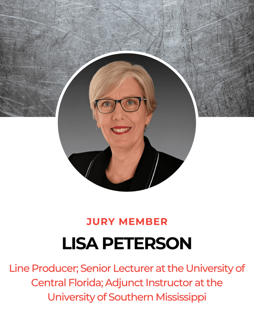 Lisa Peterson spent 20 years in Los Angeles working as a line producer and production manager, with credits including Tremors (Universal), Hotel Room (HBO), Major League (Paramount), National Lampoon’s Favorite Deadly Sins (Showtime), and Fantasia 2000 (Disney). In 2000, she relocated to Orlando and joined the University of Central Florida’s film program. She served as a senior instructor and graduate scholar for 21 years, retiring in 2023. Now based in Long Beach, Mississippi, Peterson continues to share her industry expertise as an adjunct instructor in the University of Southern Mississippi’s film program.