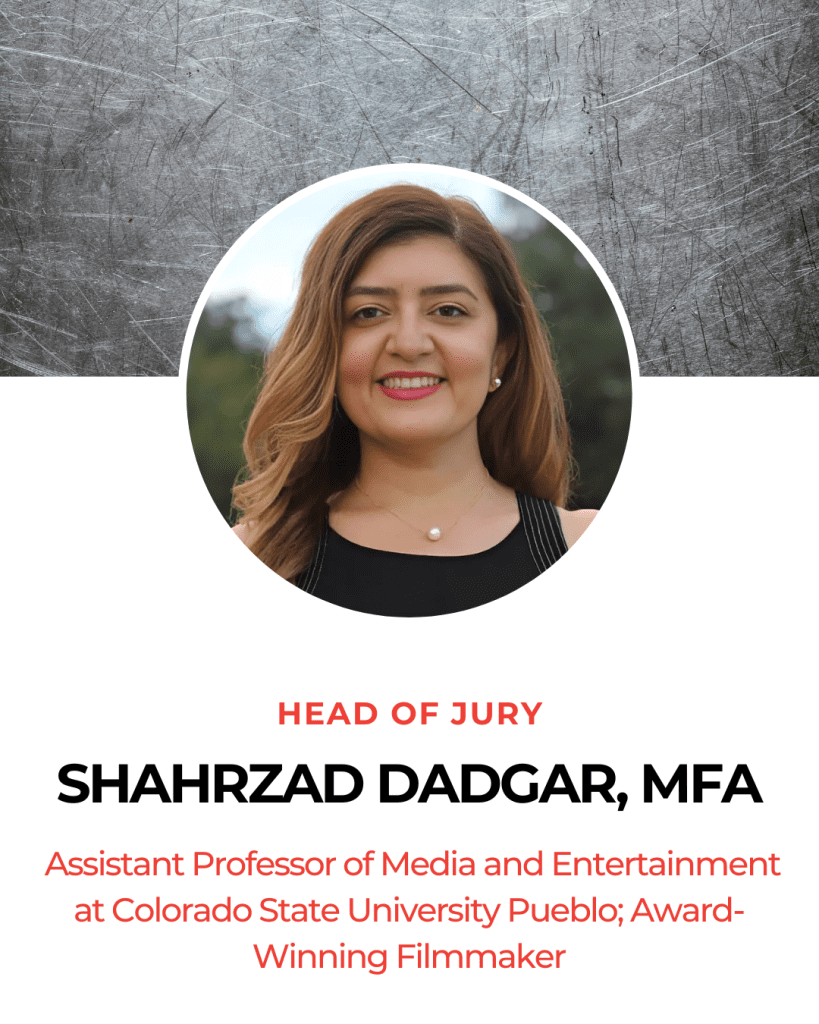 Shahrzad “Sherry” Dadgar is an Iranian feminist, award-winning filmmaker, and educator. Her short film Highlight, which examined gender, sexuality, and bodily autonomy, was banned by the Iranian Ministry of Culture—strengthening her resolve to challenge censorship and advocate for inclusive media. Her debut feature, Eternity Road, continues that mission through an intersectional lens, exploring self-image, acceptance, and identity. Sherry holds an MFA in Feature Film Production and currently serves as an assistant professor of Media & Entertainment at CSU Pueblo, where she mentors the next generation of storytellers, helping them embrace their creative voice and expand the boundaries of representation.