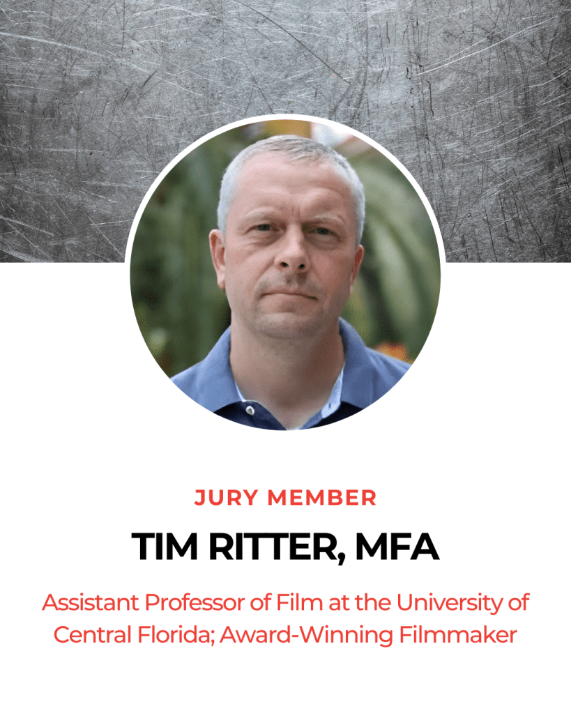 Living abroad with limited access to English-language media, Tim Ritter developed a deep love for cinema through a growing collection of VHS tapes recorded during his travels. After a successful decade as a newspaper reporter, he turned to filmmaking, inspired by Robert Rodriguez’s Rebel Without a Crew. Within ten years, he had directed multiple feature films that screened globally, co-founded the Fort Myers Film Festival advisory board, earned an MFA in Entrepreneurial Digital Cinema at UCF, and taught over two dozen college film courses. Ritter continues to explore low-budget filmmaking and how ancient moral ideas resonate in modern narratives.
